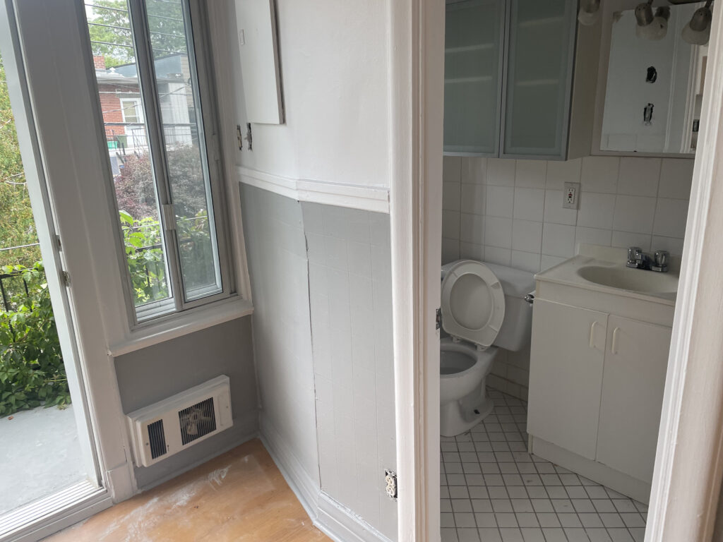 Protection méticuleuse des portes, fenêtres, paysagement et toutes surfaces adjacentes avant peinture.